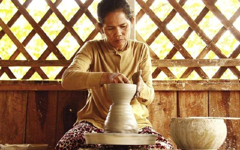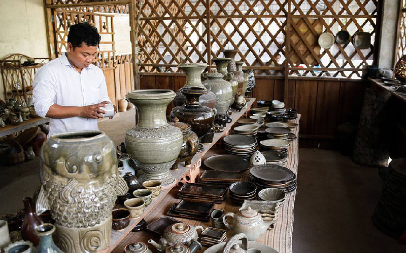 If time permit, continue the road to discover Koh Chen, a rich little village of artisans specializing in the work of engraved and silvered copper.