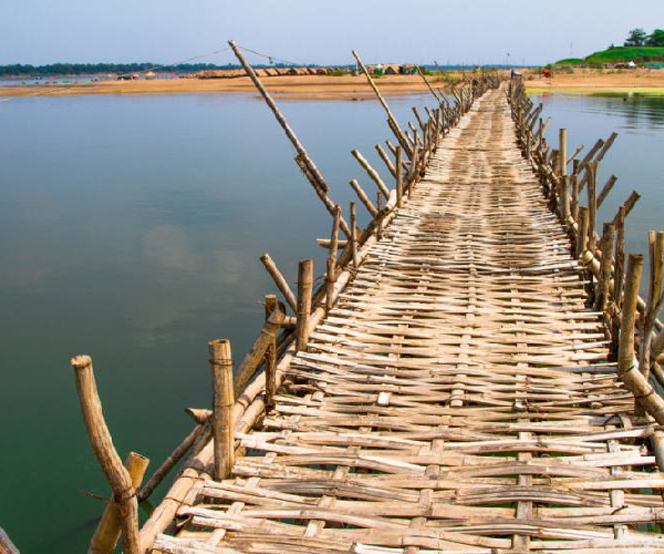 Breakfast at the hotel. On the way to Kampong Cham stop for a short break at Skun, famous for its grilled spider sellers. Superb landscapes, rice fields as far as the eye can see dotted with oil palm trees. We continue the road to visit the Kampong Cham included Wat Mohaleap then the bamboo bridge, one of the most popular attractions in the province. Walking across this traditional bridge is recommended during the dry season (January to May) when the water level of the Mekong River is low.
